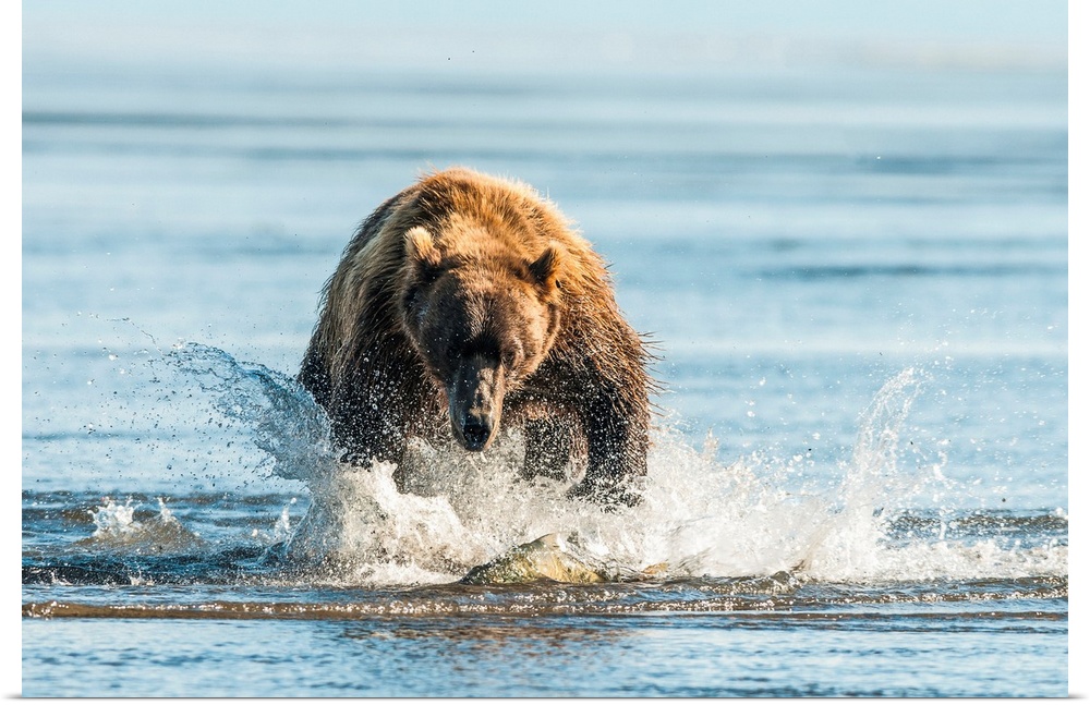 <p>Brown bear (ursus arctos) chasing fish, Katmai National Park, Alaska, United States of America.</p>