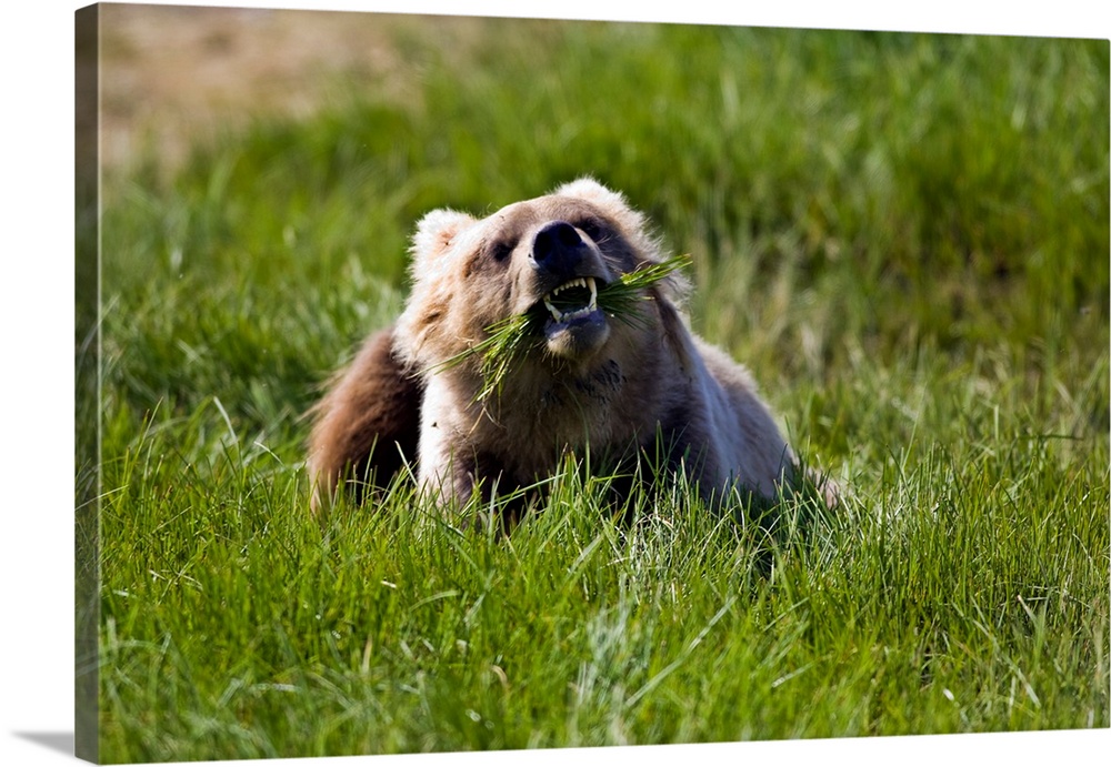 <p>Brown bear eating sedge grass in the Kaguyak area of Katmai national park, Alaska.</p>