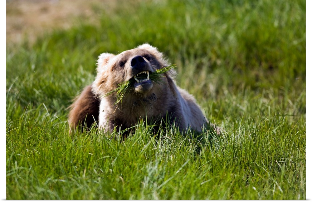 <p>Brown bear eating sedge grass in the Kaguyak area of Katmai national park, Alaska.</p>