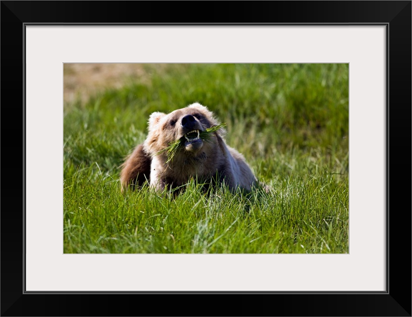 <p>Brown bear eating sedge grass in the Kaguyak area of Katmai national park, Alaska.</p>