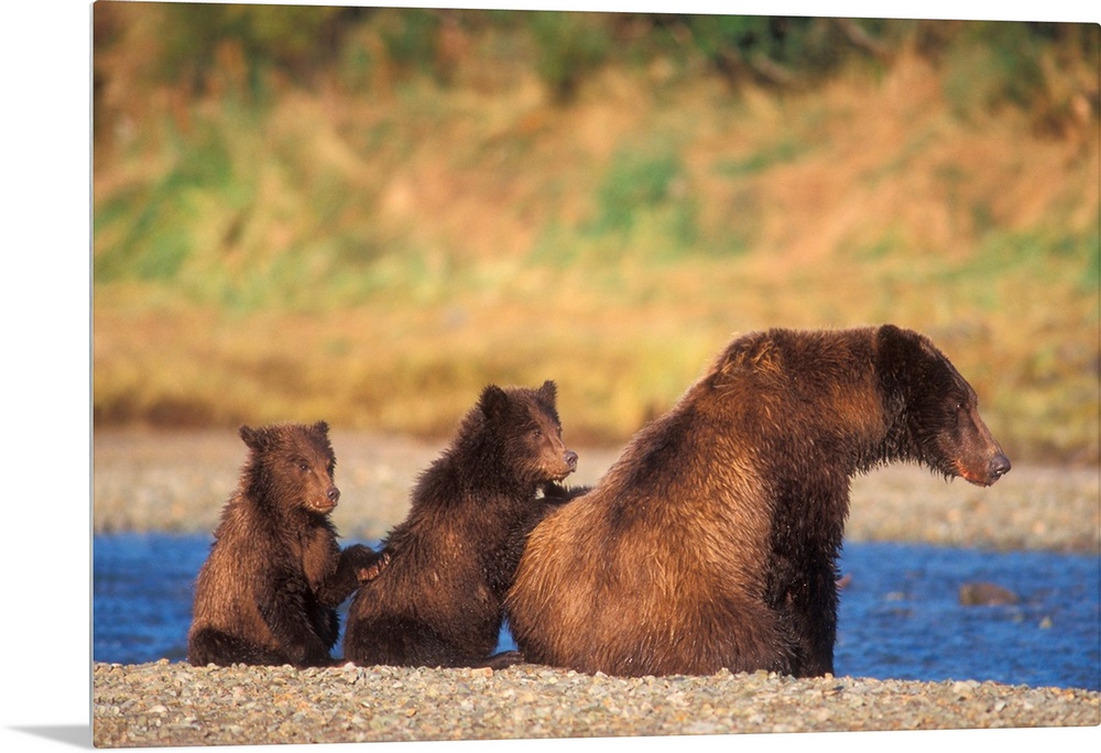 <p>Brown bear, grizzly bear, sow with cubs, Katmai National Park, Alaskan peninsula.</p>