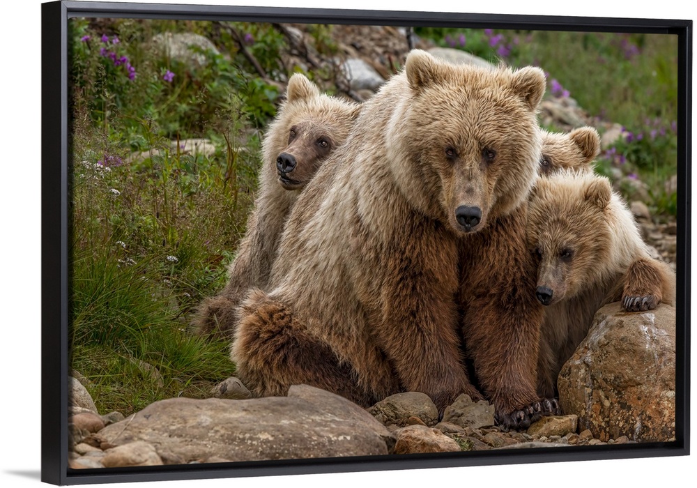 <p>Brown bear sow and two cubs, Katmai National Park, Alaska, USA</p>