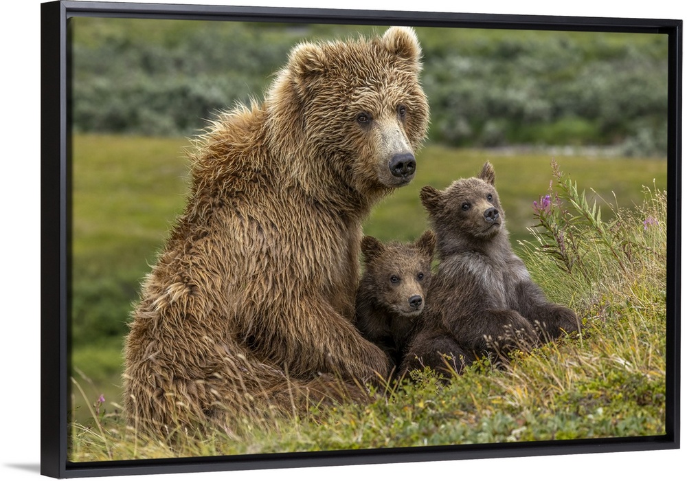 <p>Brown bear sow and two cubs, Katmai National Park, Alaska, USA</p>