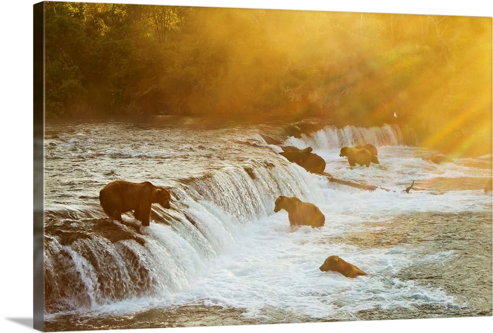 <p>Brown bears (Ursus arctos) gathered at Brooks Falls to fish for salmon, Brooks River, Katmai National Park, Alaska.</p>
