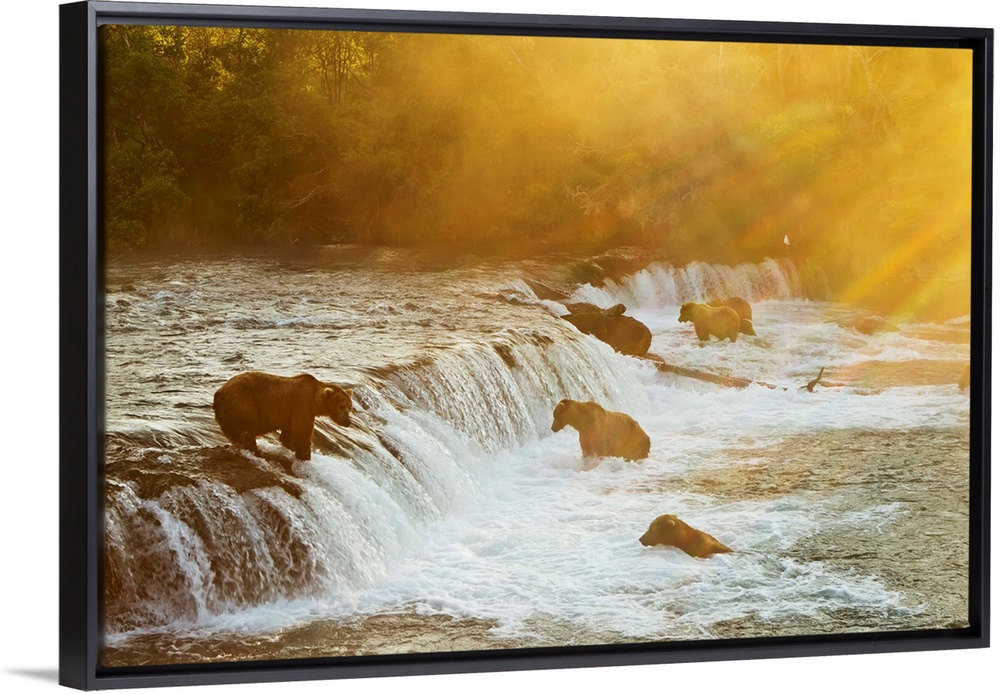 <p>Brown bears (Ursus arctos) gathered at Brooks Falls to fish for salmon, Brooks River, Katmai National Park, Alaska.</p>