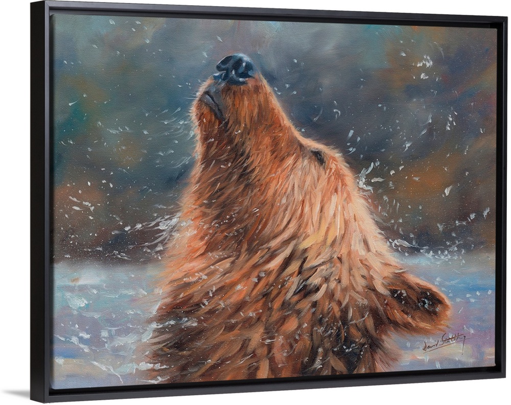 <p>Contemporary painting of a grizzly bear shaking his head to get all the water off.</p>