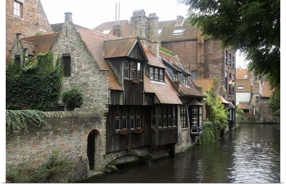 <p>Photograph of old houses on the edge of the river in Belgium.</p>