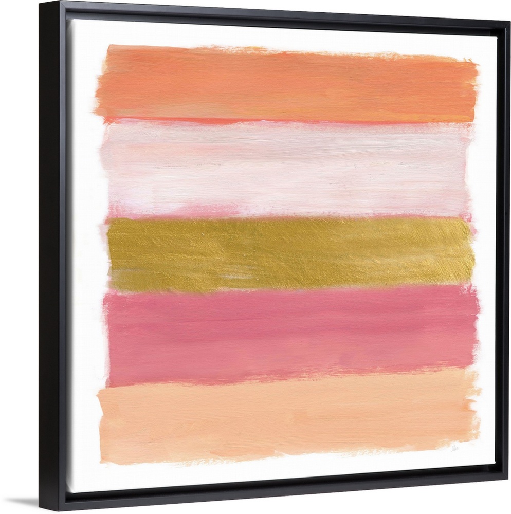 <p>Five horizontal brush strokes stacked on top of each other construct this horizontal abstract contemporary painting.</p>
