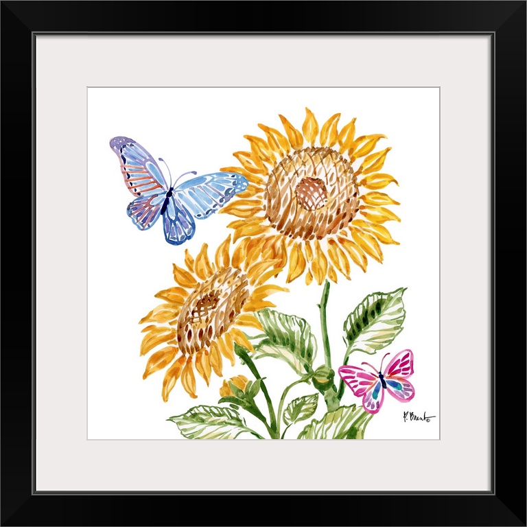 Art Paul Brent Decorative Art Florals Painting Watercolor Wildlife Insect and Arachnid Butterfly Yellow Wall Art