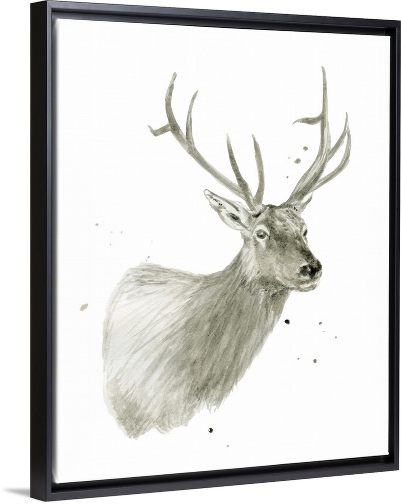 <p>Watercolor painting of a deer on a solid white background with a little bit of paint splatter.</p>