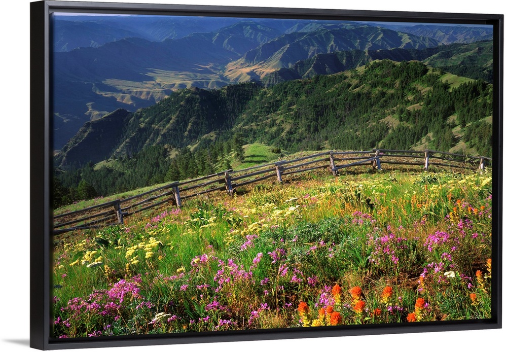 <p>Wildflowers on Buckhorn Viewpoint overlooks the Imnaha River Valley in Hells Canyon National Recreation Area, Oregon</p>