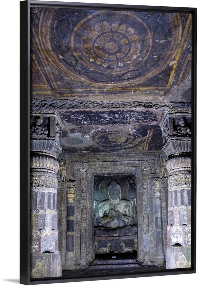 <p>Buddha statue and painting in the Ajanta Caves, UNESCO World Heritage Site, Maharashtra, India, Asia</p>