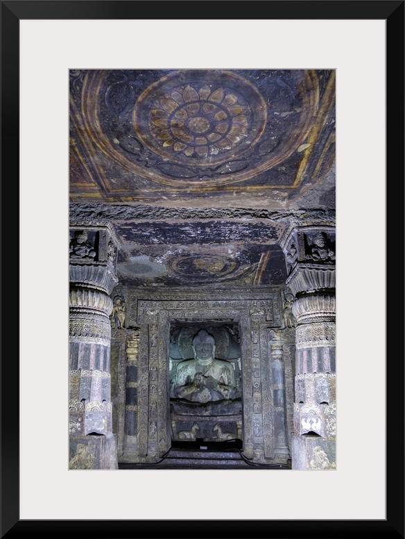 <p>Buddha statue and painting in the Ajanta Caves, UNESCO World Heritage Site, Maharashtra, India, Asia</p>
