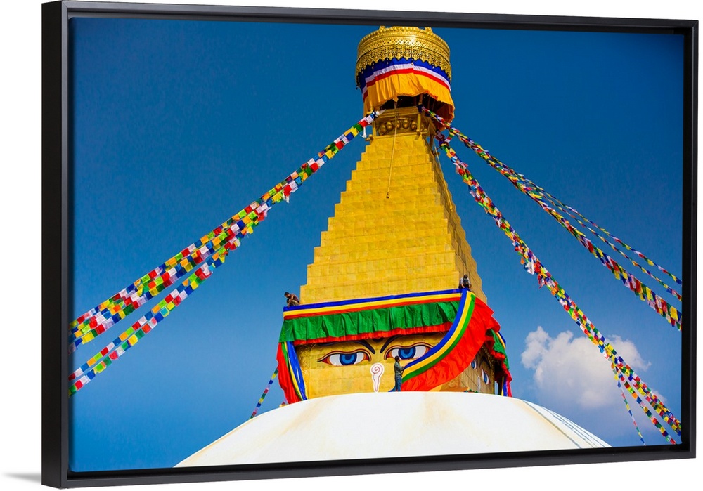 <p>Buddhist Monks decorating the temple at Bouddha, Kathmandu, Nepal</p>