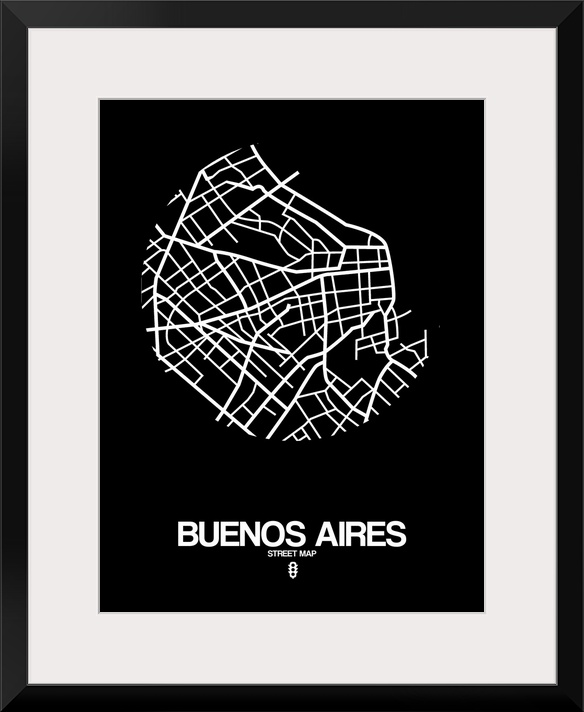 <p>Minimalist art map of the city streets of Buenos Aires in black and white.</p>