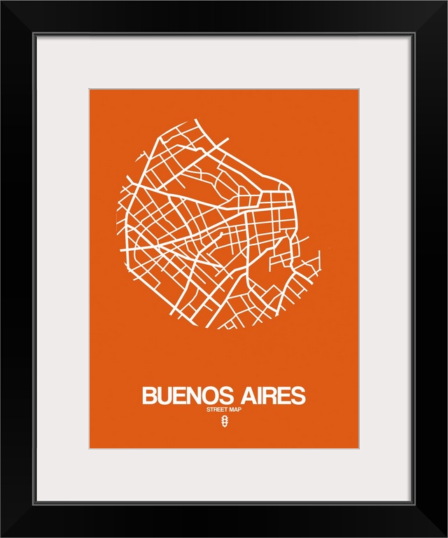 <p>Minimalist art map of the city streets of Buenos Aires in orange and white.</p>
