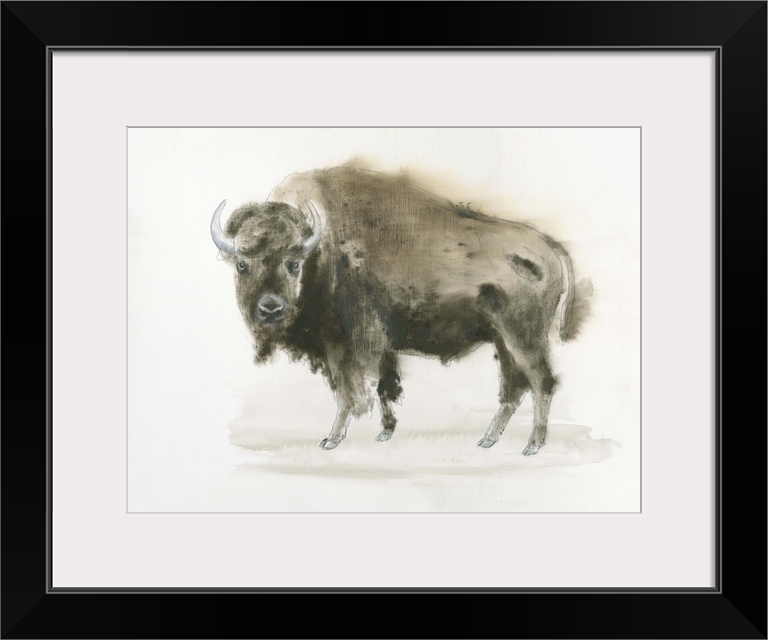 <p>Contemporary artwork of a bison standing against a white background.</p>