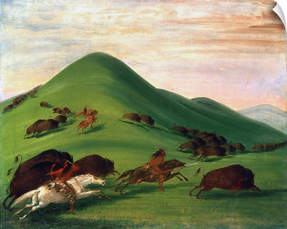 <p>Buffalo Hunt, 1830S. With Bows And Lances, Comanche. Canvas By George Catlin, 1830-39.</p>