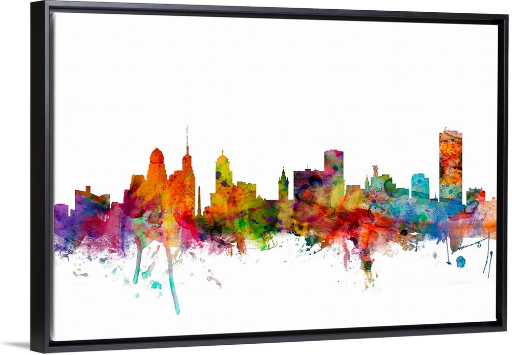 <p>Watercolor artwork of the Buffalo skyline against a white background.</p>