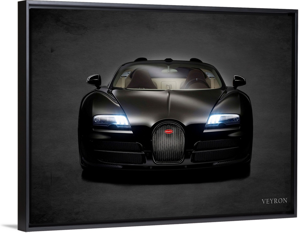 <p>Photograph of a black Bugatti Veyron printed on a black background with a dark vignette.</p>