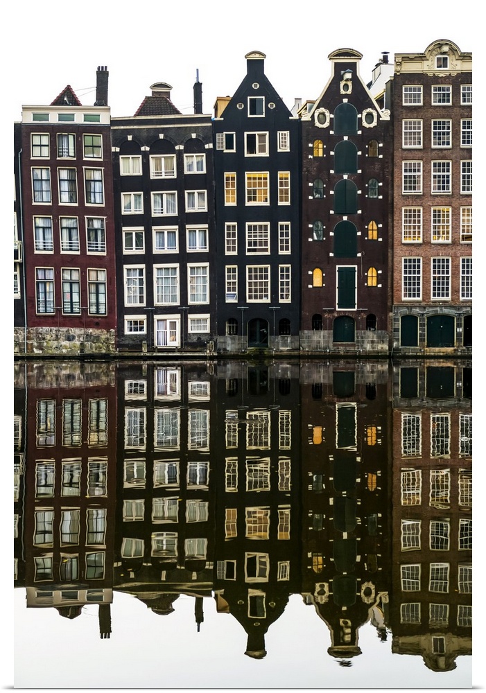 <p>Building facades with a mirror image reflecting in a canal; Amsterdam, Netherlands</p>