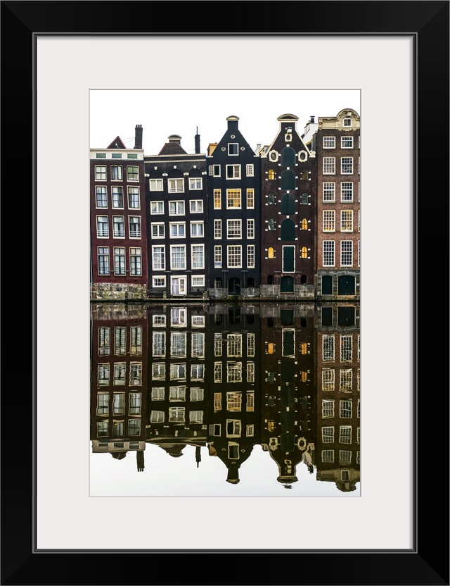 <p>Building facades with a mirror image reflecting in a canal; Amsterdam, Netherlands</p>