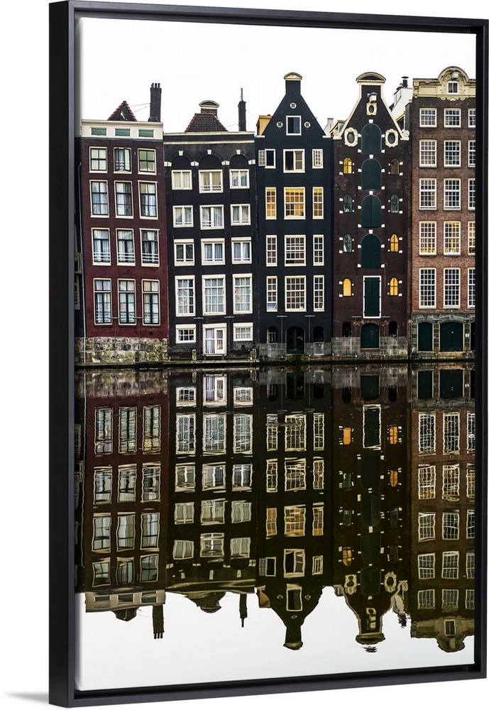 <p>Building facades with a mirror image reflecting in a canal; Amsterdam, Netherlands</p>