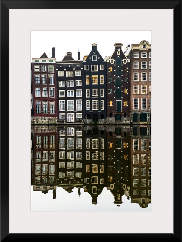 <p>Building facades with a mirror image reflecting in a canal; Amsterdam, Netherlands</p>