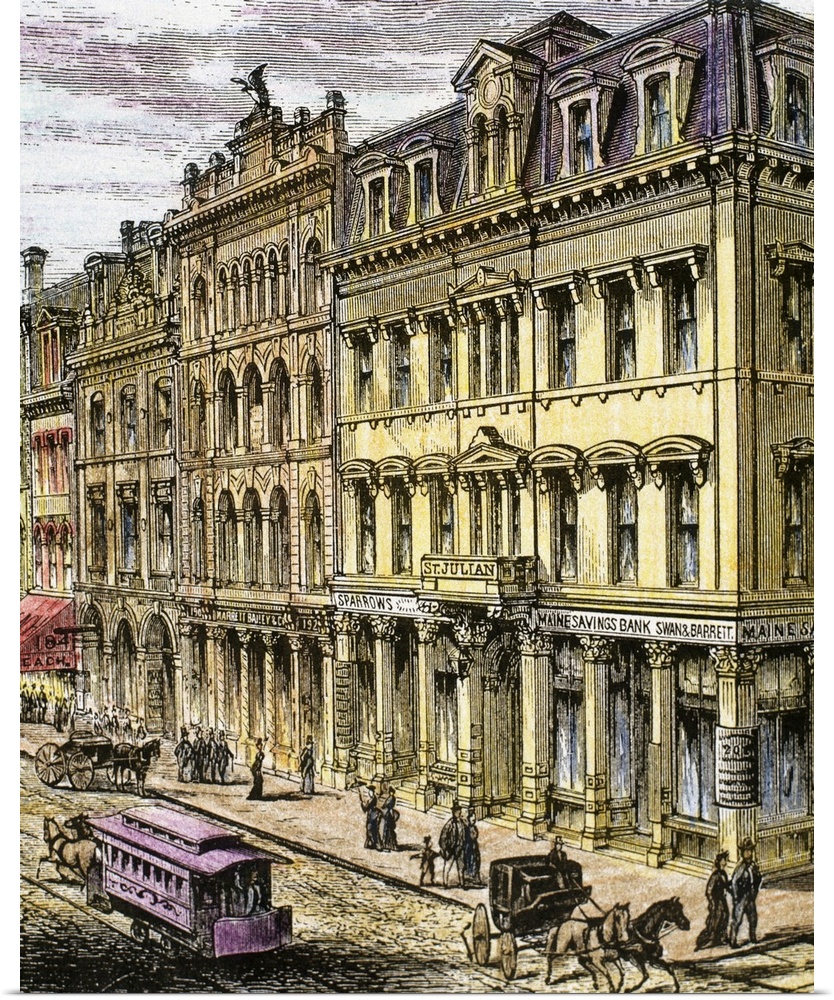 <p>Building Maine Savings Bank on Middle Street. Portland. 1876. Maine. United States.</p>