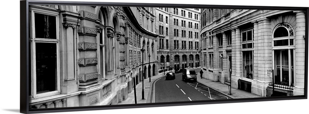 <p>A narrow curved road lined with light stone covered buildings in downtown London.</p>