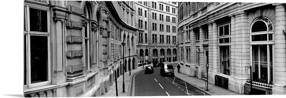 <p>A narrow curved road lined with light stone covered buildings in downtown London.</p>