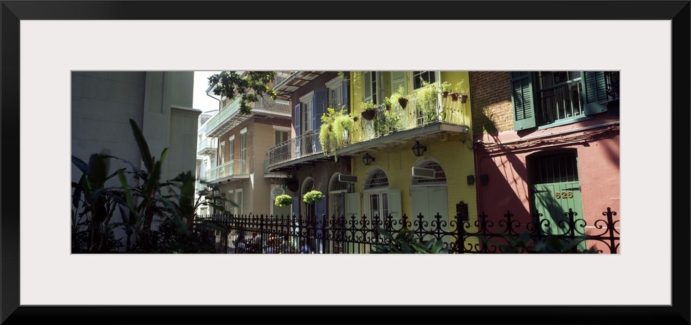 <p>Panoramic picture taken of colorful buildings that line a street in New Orleans.</p>