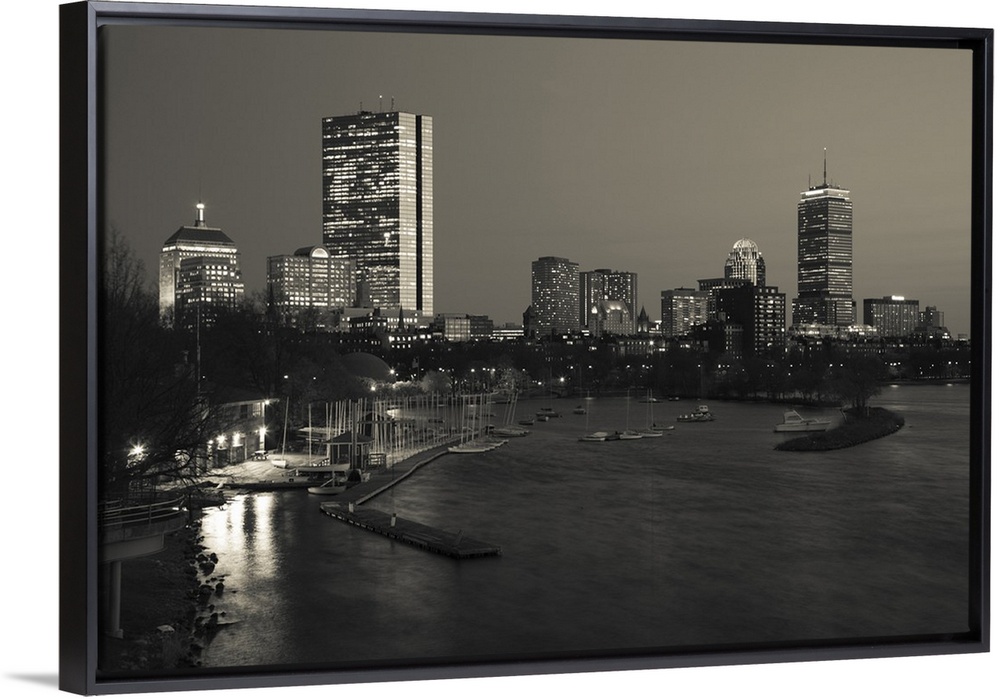 <p>Landscape, oversized photograph of the Boston skyline at night, including the Boston Back Bay and the John Hancock Tower.</p>