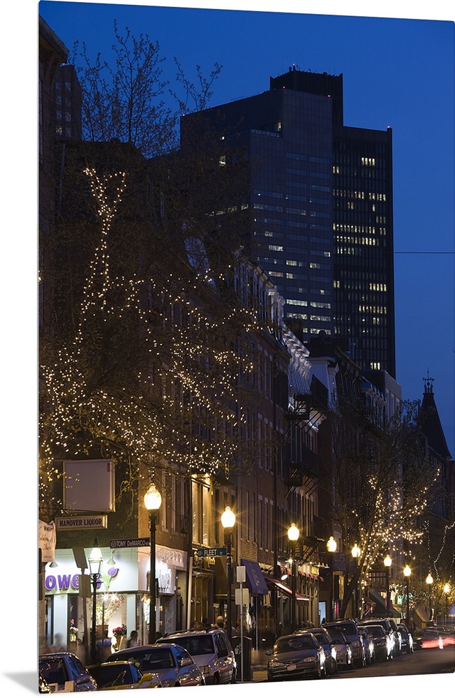 <p>Buildings in a city, Hanover Street, North End, Boston, Massachusetts, USA</p>