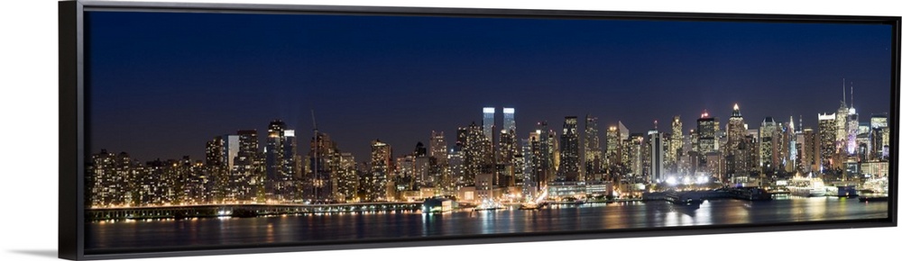 <p>This wall art is a panoramic photograph of the marvelous city skyline illuminated at night.</p>