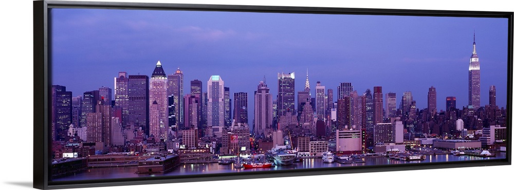 <p>This panoramic photograph was taken at dusk of the Manhattan skyline from across the water.</p>
