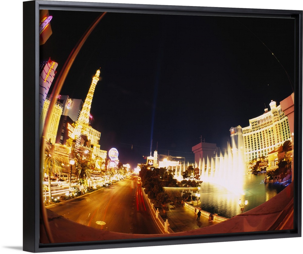 <p>Big photograph of downtown Las Vegas, Nevada (NV) lit up at night.</p>