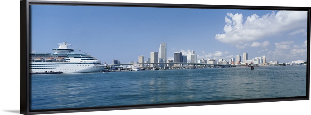 <p>Panoramic view of Miami Florida's Biscayne Bay waterfront with ship on the water.</p>