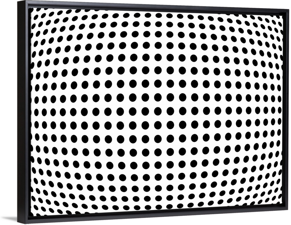 <p>Black dots on a white background, Op Art Print. The change in size and shape of the circles gives the appearance of the print expanding from the centre.</p>