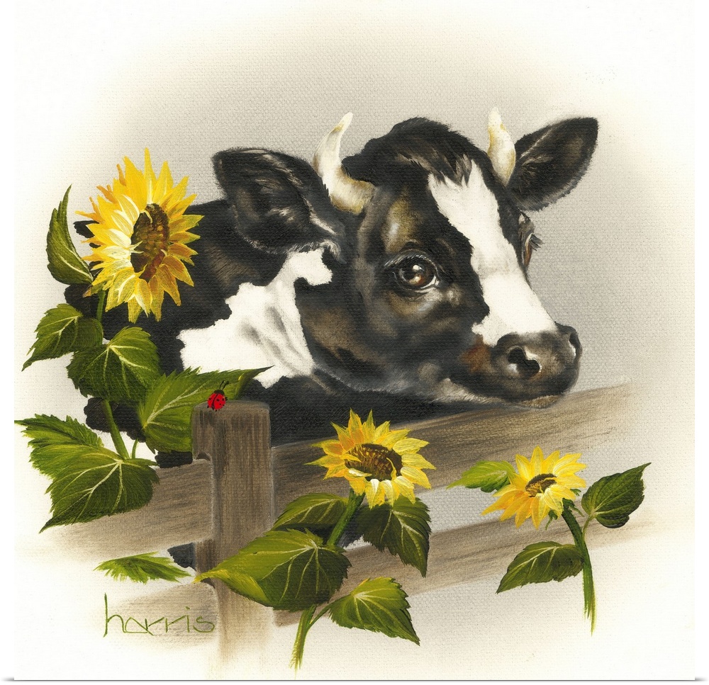 Art Decorative Art Florals Sunflower Painting Wildlife Cow