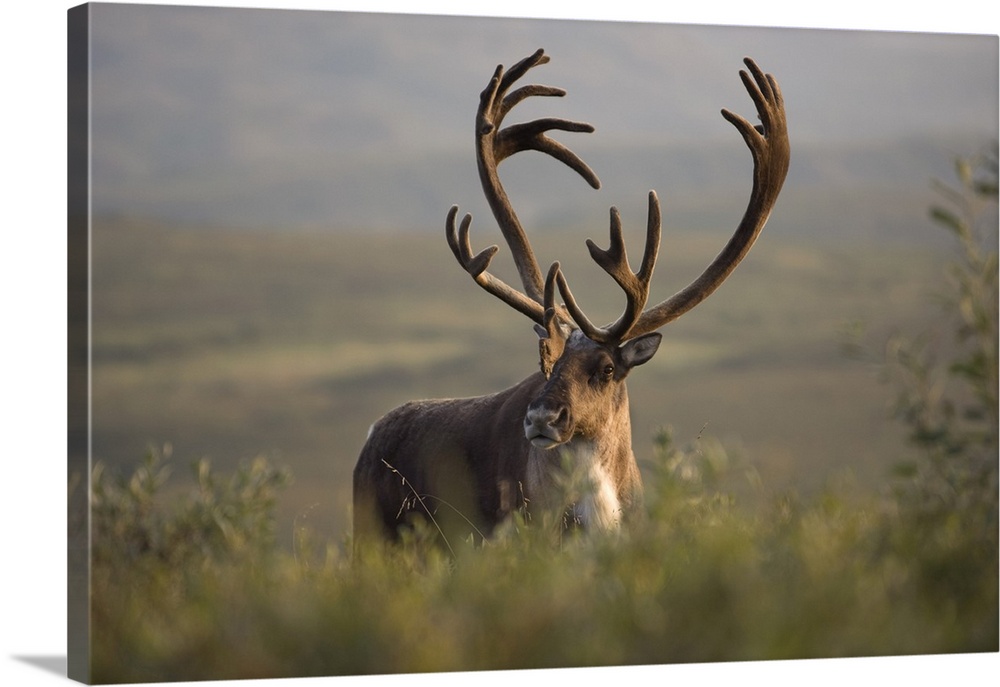 <p>Bull Caribou In Velvet On Tundra Denali National Park Interior Alaska Summer</p>