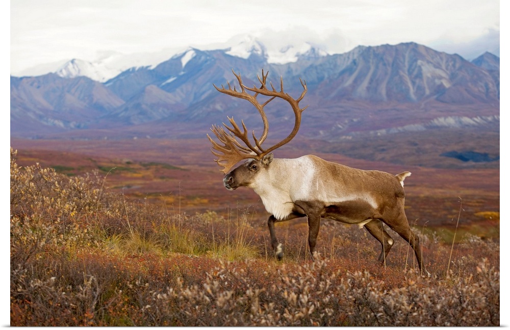 <p>Bull caribou on Autumn tundra with Alaska Range in the background, Denali National Park, Interior Alaska</p>