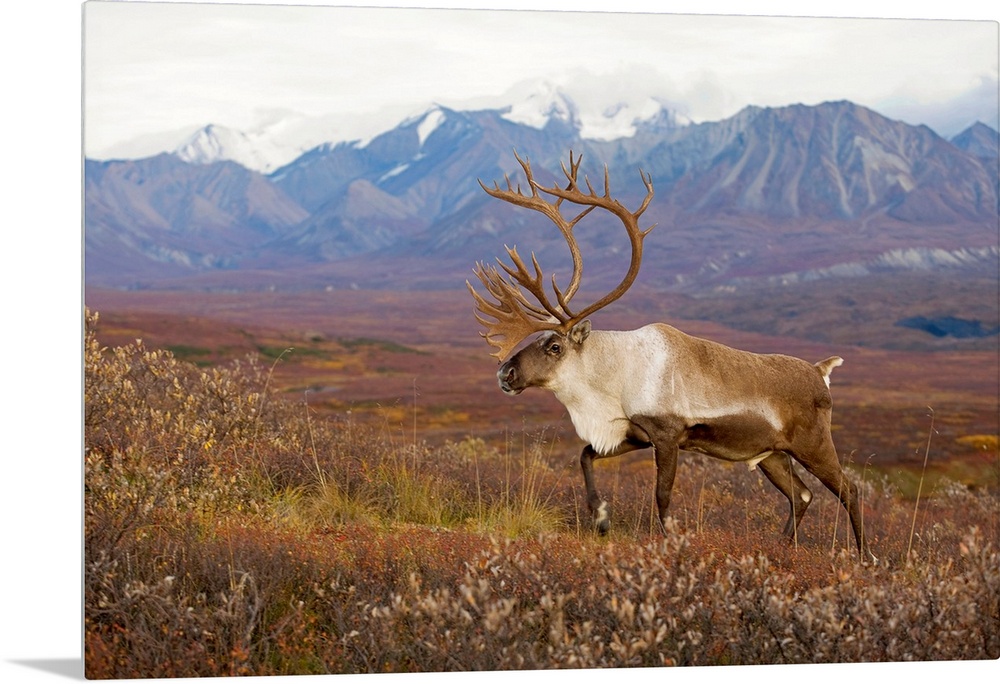 <p>Bull caribou on Autumn tundra with Alaska Range in the background, Denali National Park, Interior Alaska</p>