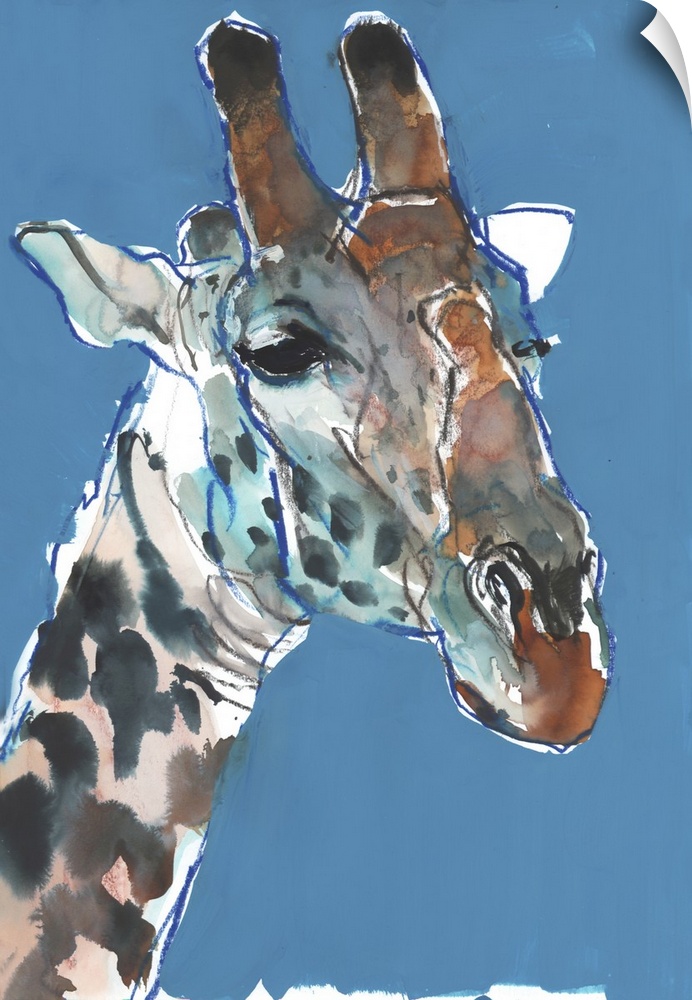 Mark Adlington Art Blue Wall Art Contemporary Art Painting Watercolor Wildlife Giraffe