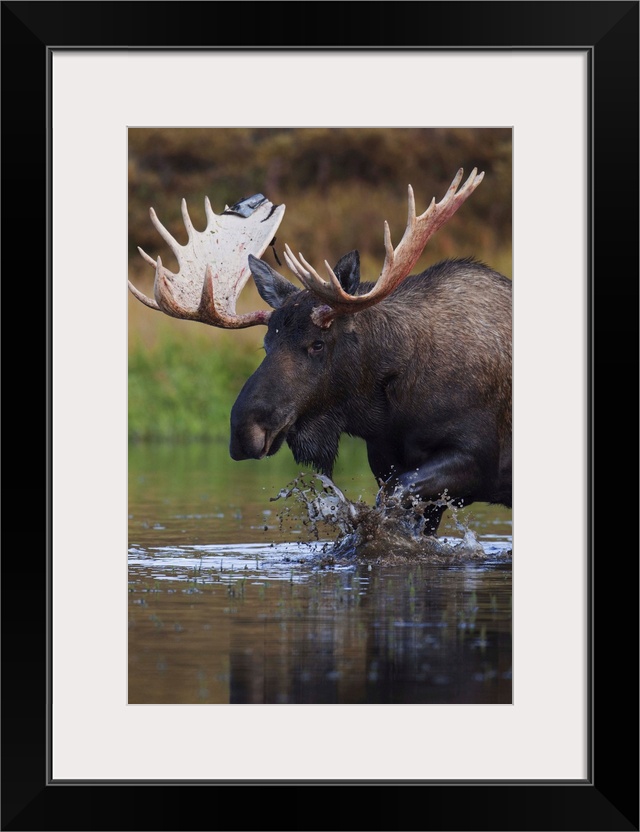 <p>Bull Moose Walks Through A Pond In Denali National Park, Interior Alaska</p>