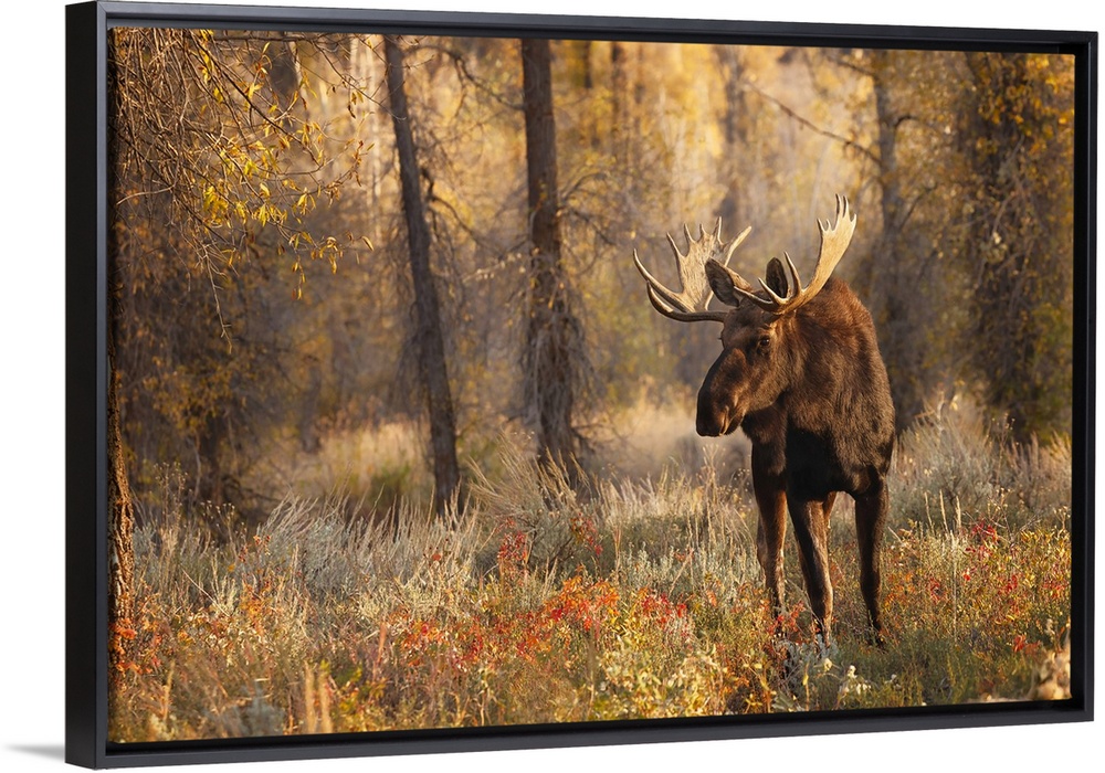 <p>Bull moose in autumn, Grand Teton National Park, Wyoming. United States, Wyoming.</p>