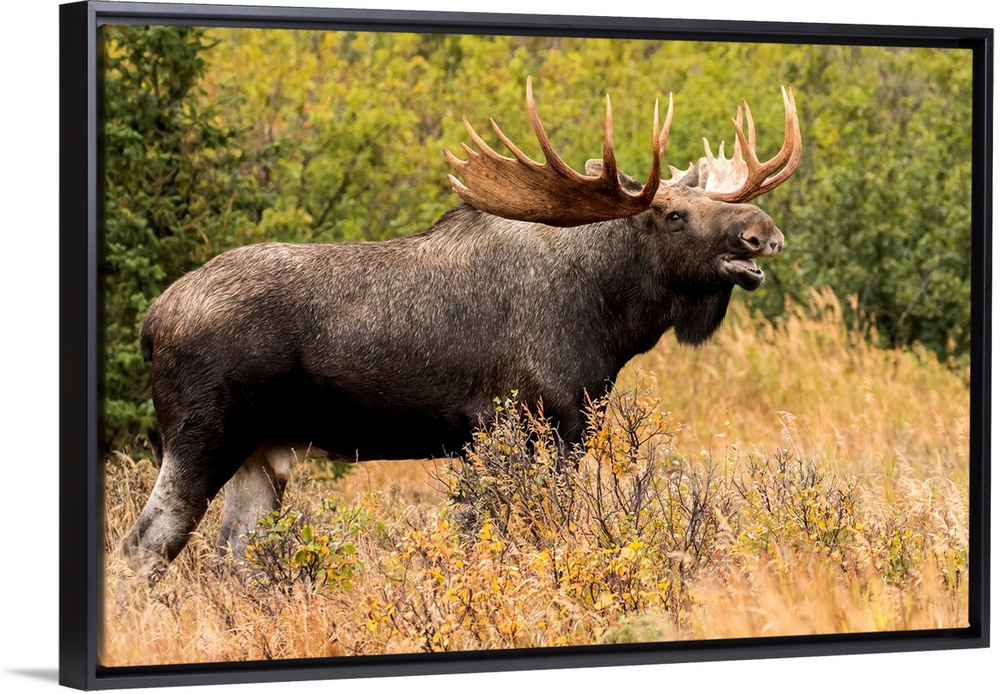<p>Bull moose (alces alces) in the rutting period, Powerline Pass, South-central Alaska, Anchorage, Alaska, United States of America.</p>