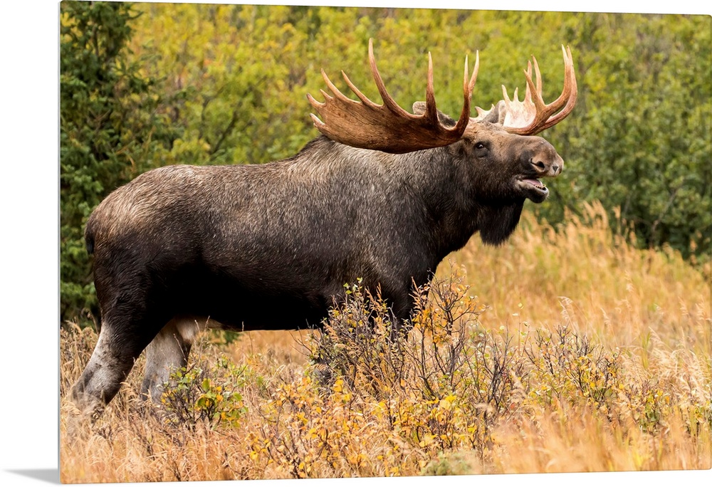 <p>Bull moose (alces alces) in the rutting period, Powerline Pass, South-central Alaska, Anchorage, Alaska, United States of America.</p>