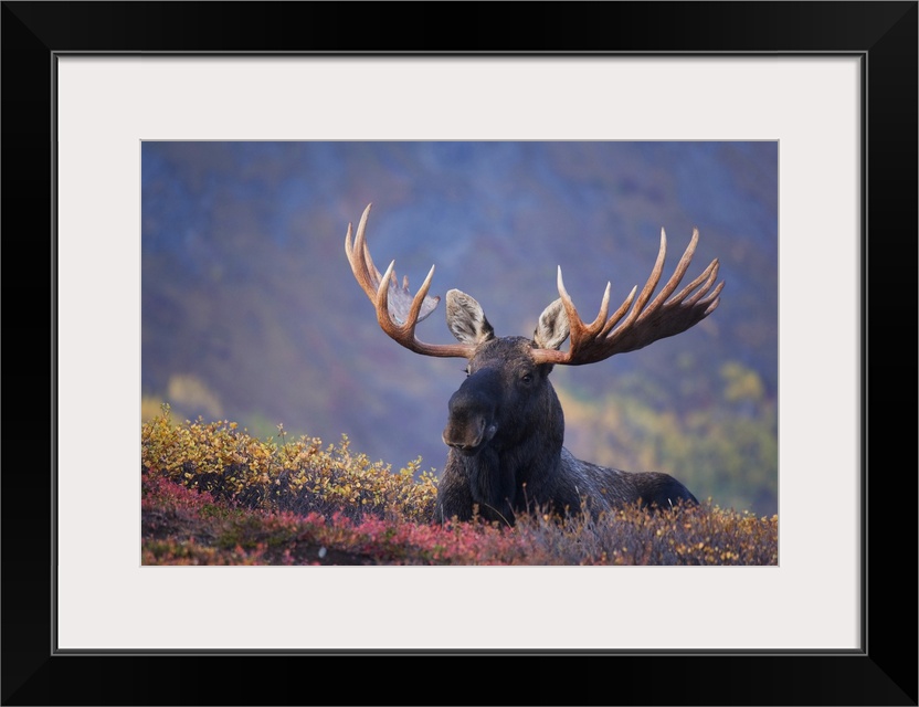 <p>Bull Moose Bedded Down During Autumn, Powerline Pass, Chugach State Park, Chugach Mountains, Alaska</p>