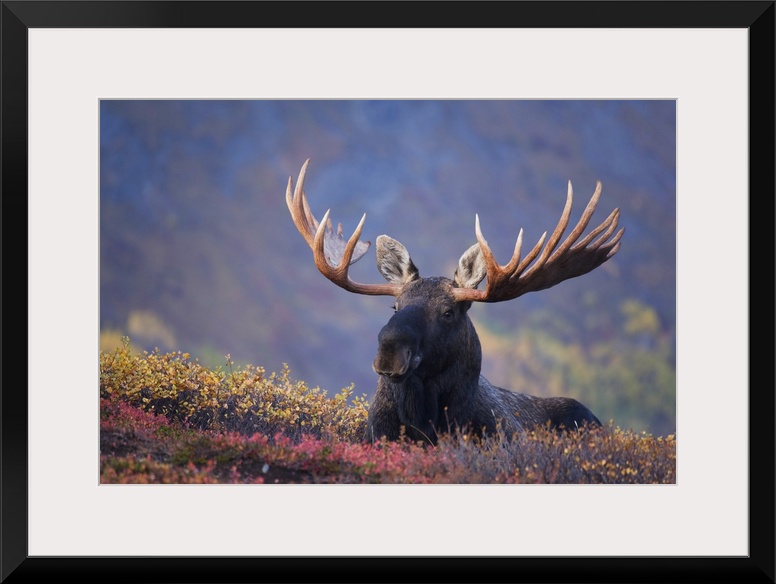 <p>Bull Moose Bedded Down During Autumn, Powerline Pass, Chugach State Park, Chugach Mountains, Alaska</p>